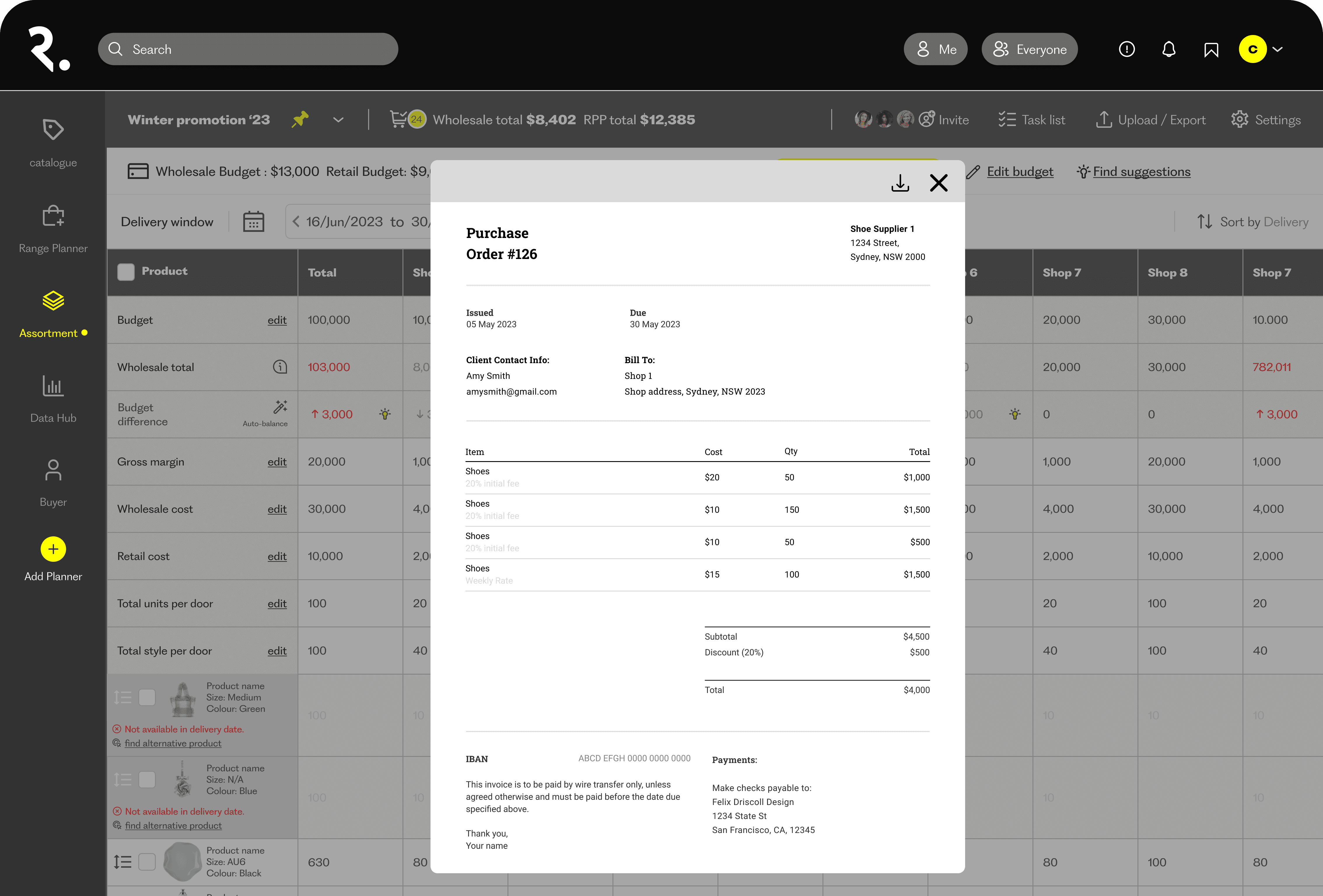 What I did: Converted spreadsheet logic into in-product signals (budget variance, under/over buy indicators, delivery constraints) and kept constraints visible during selection and allocation.