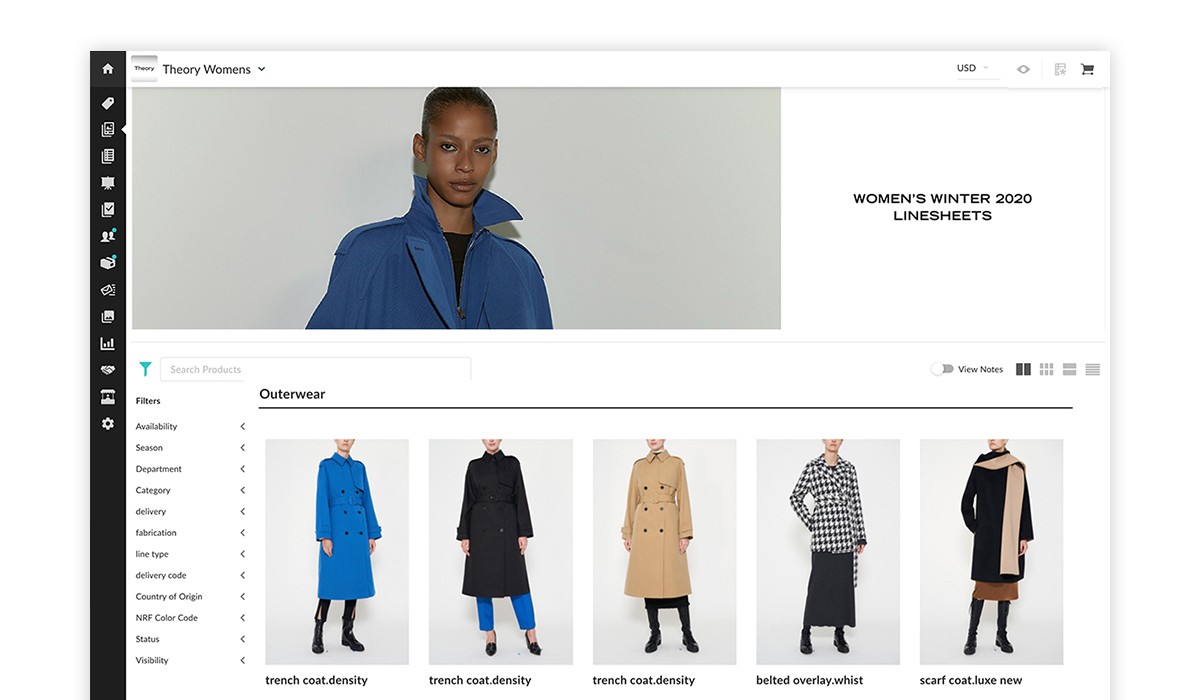 A visual-first catalogue helps buyers scan large ranges quickly before narrowing. Filters support progressive refinement (category, brand, season, delivery month, size, colour, price) without forcing decisions upfront.